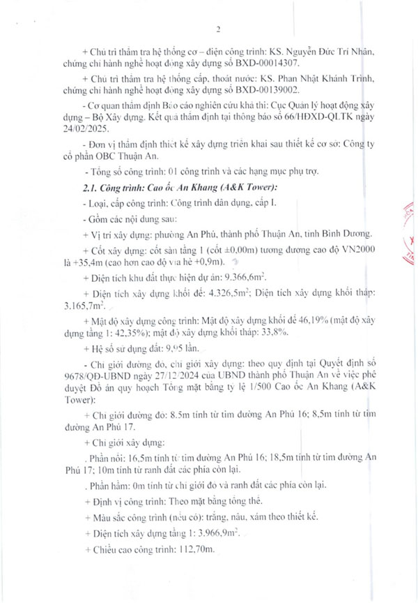 Đồng thời, Giấy phép xây dựng đã được cấp đầy đủ, xác nhận A&K Tower đủ điều kiện triển khai thi công theo đúng thiết kế được phê duyệt và tiêu chuẩn an toàn công trình cao tầng. Đây là yếu tố quan trọng khẳng định uy tín của chủ đầu tư OBC Thuận An trong việc tuân thủ pháp luật và đảm bảo tiến độ thi công minh bạch.