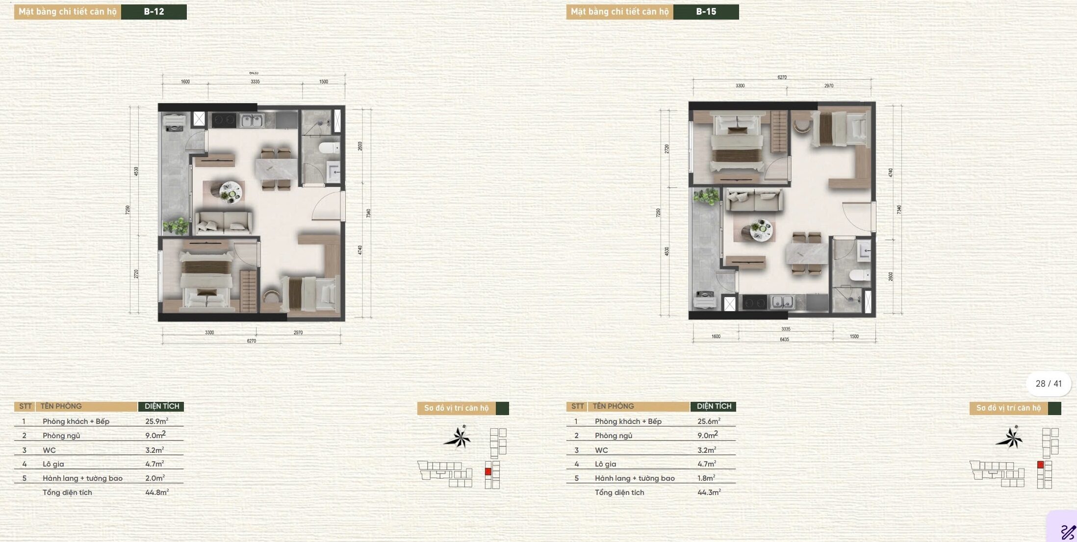 💫 Căn PenThouse : 130m2 – 137m2.